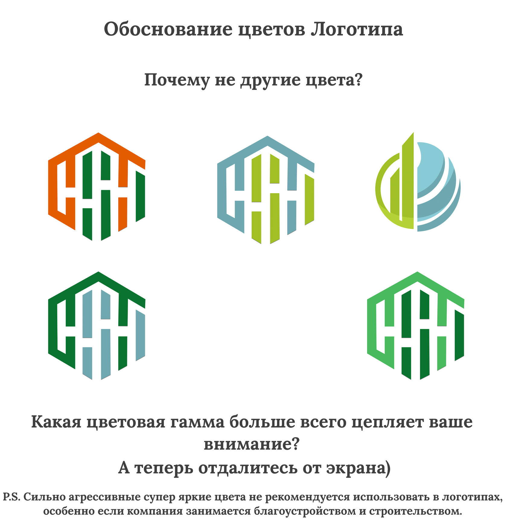 После ознакомления, были вопросы на которые я отвечал лично. В итоге, у коллектива возник интерес поэксперементировать с цветовой гаммой будущего логотипа. Я создал несколько вариантов и создал опрос.